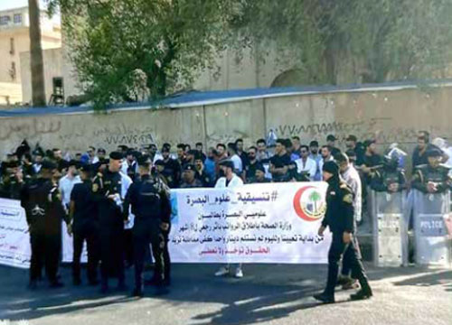 وفي العاصمة بغداد، تظاهر المئات من الموظفين العلوميين الجدد في وزارة الصحة، امام مبنى الوزارة في بغداد، للمطالبة بصرف مستحقاتهم المتأخرة.