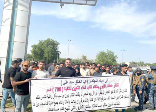 وفي العاصمة بغداد، تظاهر العشرات مطالبين بإلغاء الكتاب الصادر من مكتب رئيس الوزراء، القاضي بإلغاء تعيينهم على وزارة الدفاع بصفة مدني.