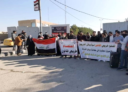 وتظاهر العشرات من خريجي كليات القانون في محافظة المثنى وسط المحافظة، مطالبين بتوفير فرص العمل.