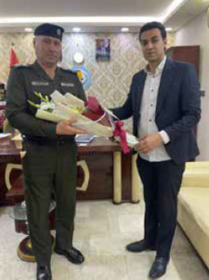 وقدّم عضو اللجنة المركزية للحزب الرفيق محمود سعدون باقتي زهور الى اللواء مظفر كاظم سلمان، قائد شرطة الرصافة، واللواء الركن ظافر المحمداوي قائد عمليات الرصافة.