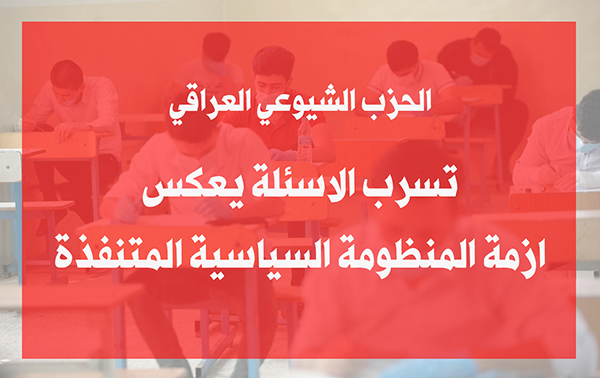 قالت عضو اللجنة المركزية للحزب الشيوعي العراقي الرفيقة سهاد الخطيب في تصريح صحفي للمركز الإعلامي للحزب، إن «عملية تكرار تسرب أسئلة الامتحانات في وزارة التربية، تبين عمق فساد المنظومة المتنفذة، وضعف امكانياتها في حفظ حقوق العملية التربوية والتعليمية».